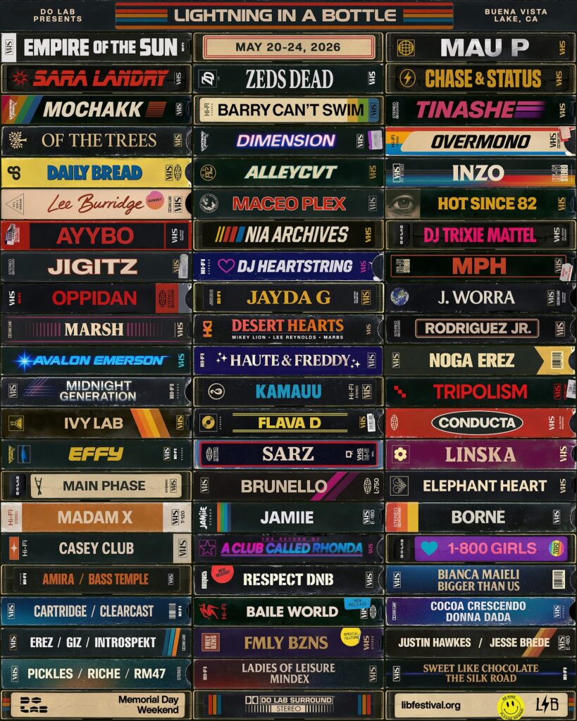 DoLab has revealed the lineup for next year’s Lightning in a Bottle (LIB), set for May 20-24, 2026 at Buena Vista Lake near Bakersfield, California.